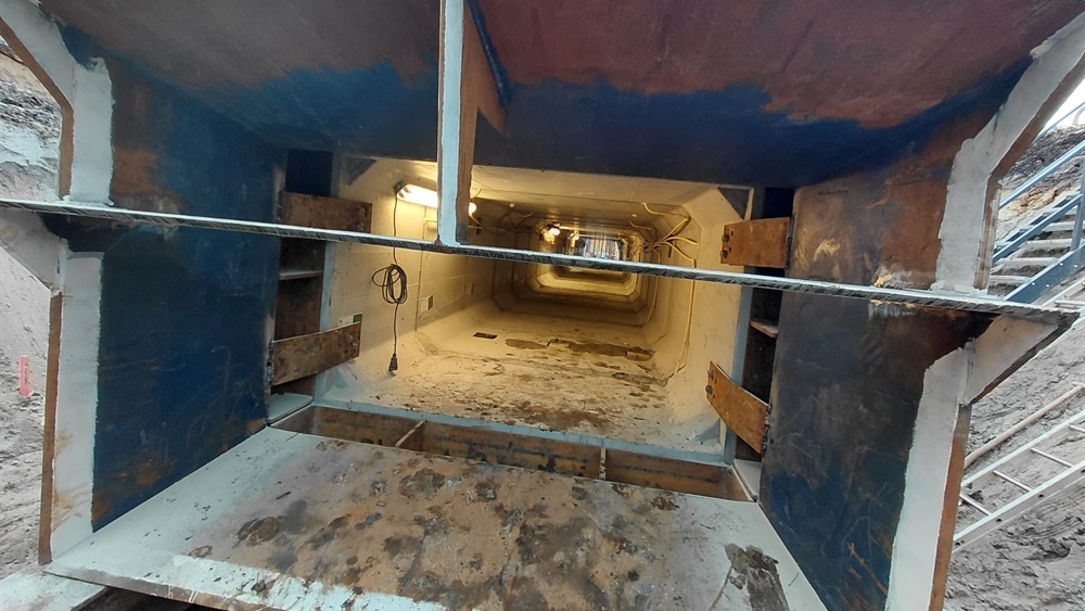 Dit is de voorkant van de ongeveer 30 meter lange betonnen buis.