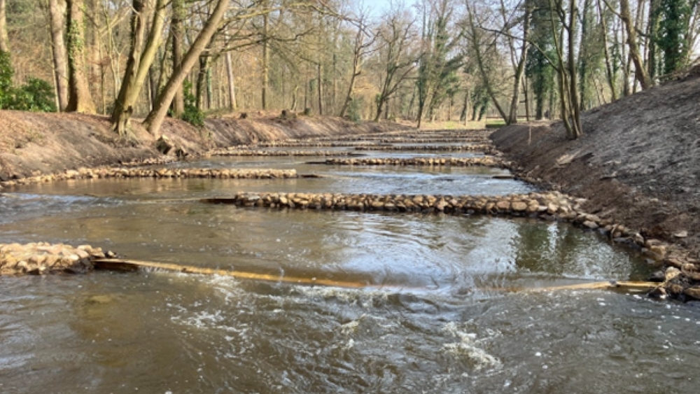 De KRW stelt normen vast voor onder andere de kwaliteit van het water, maar ook of vissen en andere waterdieren goed van de ene naar de andere beek of rivier kunnen zwemmen, bijvoorbeeld om zich goed voort te kunnen planten. Daarom hebben we een vispassage aangelegd in de Dinkel naast het Schuivenhuisje. De Stoneyschuiven zijn opgetrokken. Via de bestaande duiker onder het kanaal is vismigratie in de Dinkel daarmee weer mogelijk. De rijksmonumenten blijven hierbij behouden.