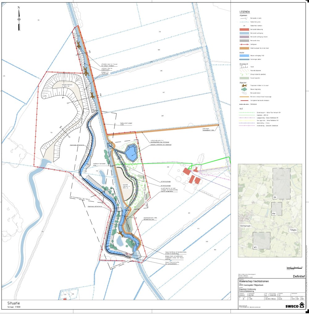 Om te voldoen aan de normen van de Kaderrichtlijn Water (KRW), wordt de Tilligterbeek op drie plekken heringericht. De twee stuwen in de Tilligterbeek vormen een obstakel voor vissen en andere waterdieren, waardoor zij niet van het ene naar het andere gebied kunnen zwemmen. Daarom maken we deze stuwen passeerbaar voor vissen en ander waterleven. De stuwen zelf blijven behouden. Ook wordt de loop van de beek op een aantal plekken aangepast. Hierbij krijgt de Tilligterbeek meer lengte en meer variatie in oevers, stroming en ruimte voor waterberging (vasthouden van water in bergingsgebieden).